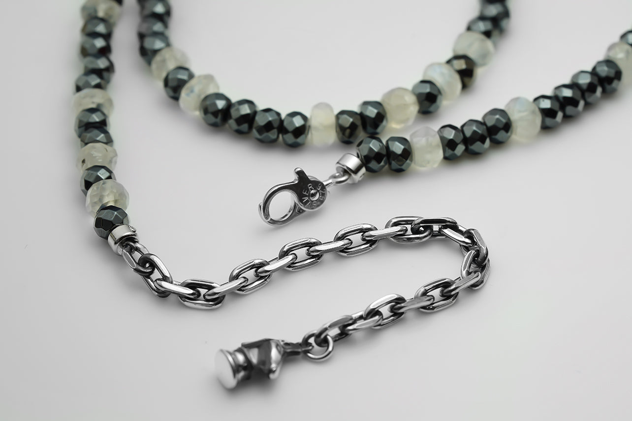 ムーンストーンとヘマタイトを組み合わせたコンビネーションブレスレット。